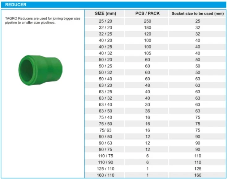 TAGRO REDUCERS are used for joining bigger size pipeline to smaller size pipelines - High temperature & pressure resistance Corrosion-free & non-toxic - Easy installation with fusion welding