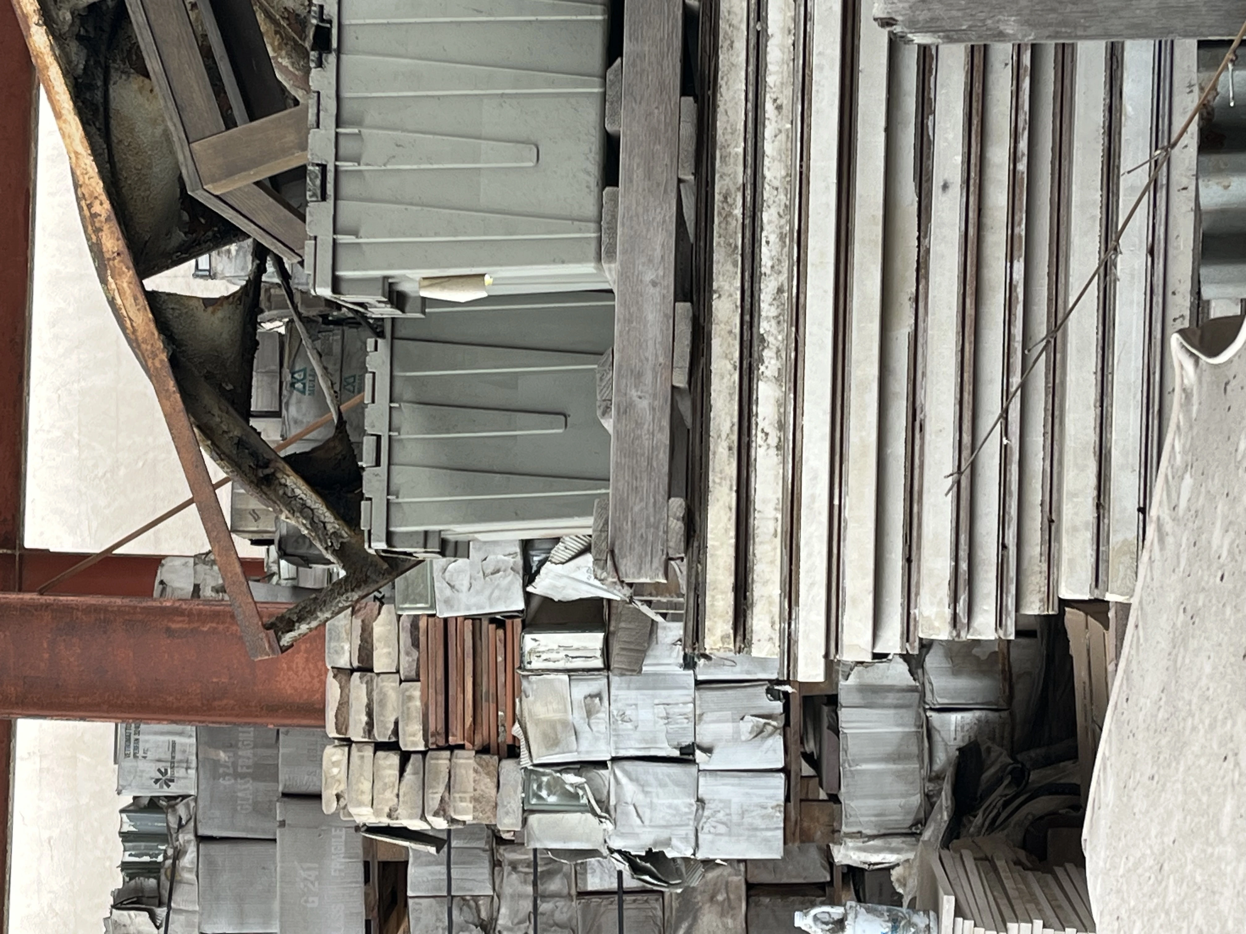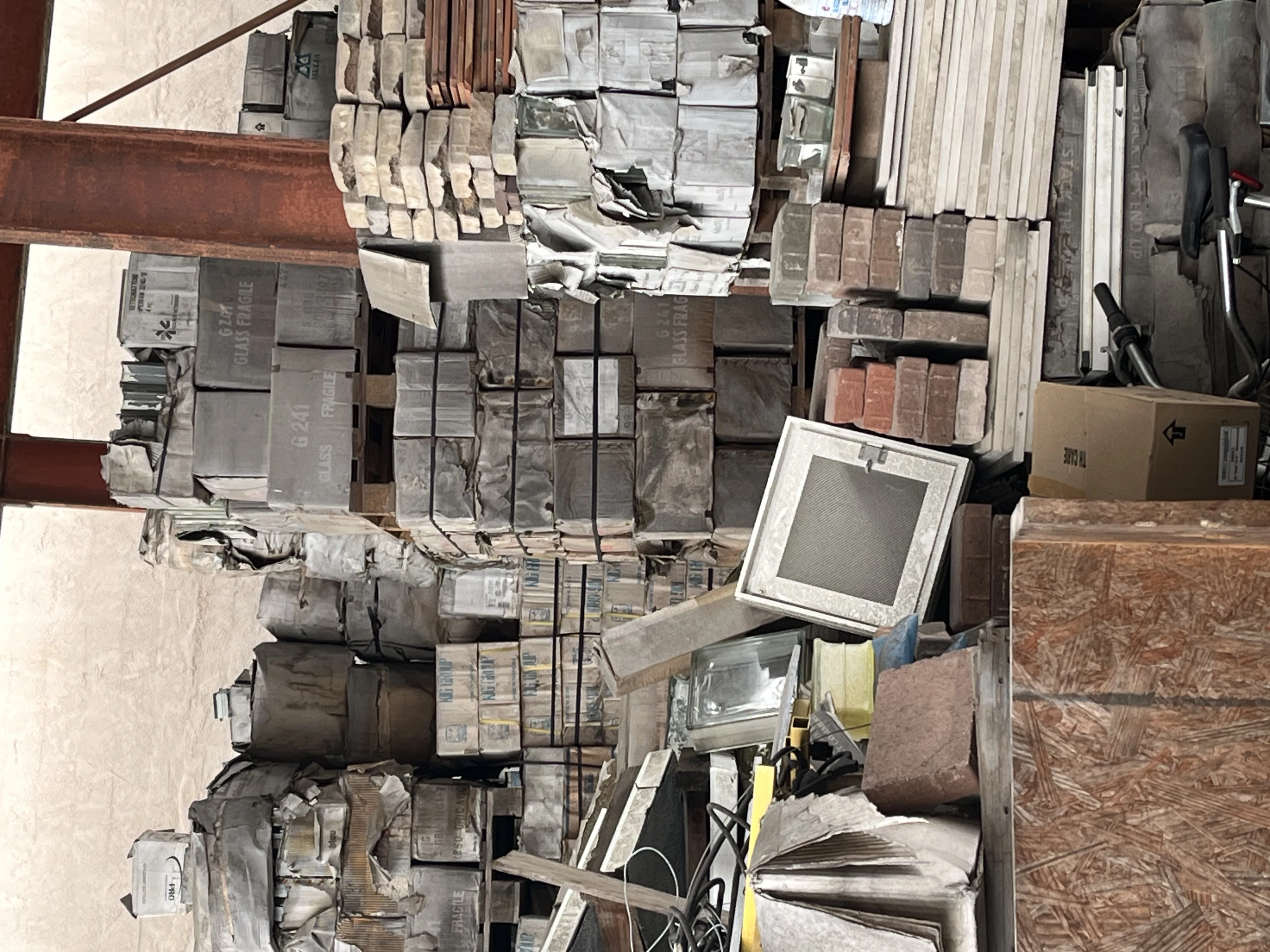 Tons of glass block and brick as well as stone and various other building materials.