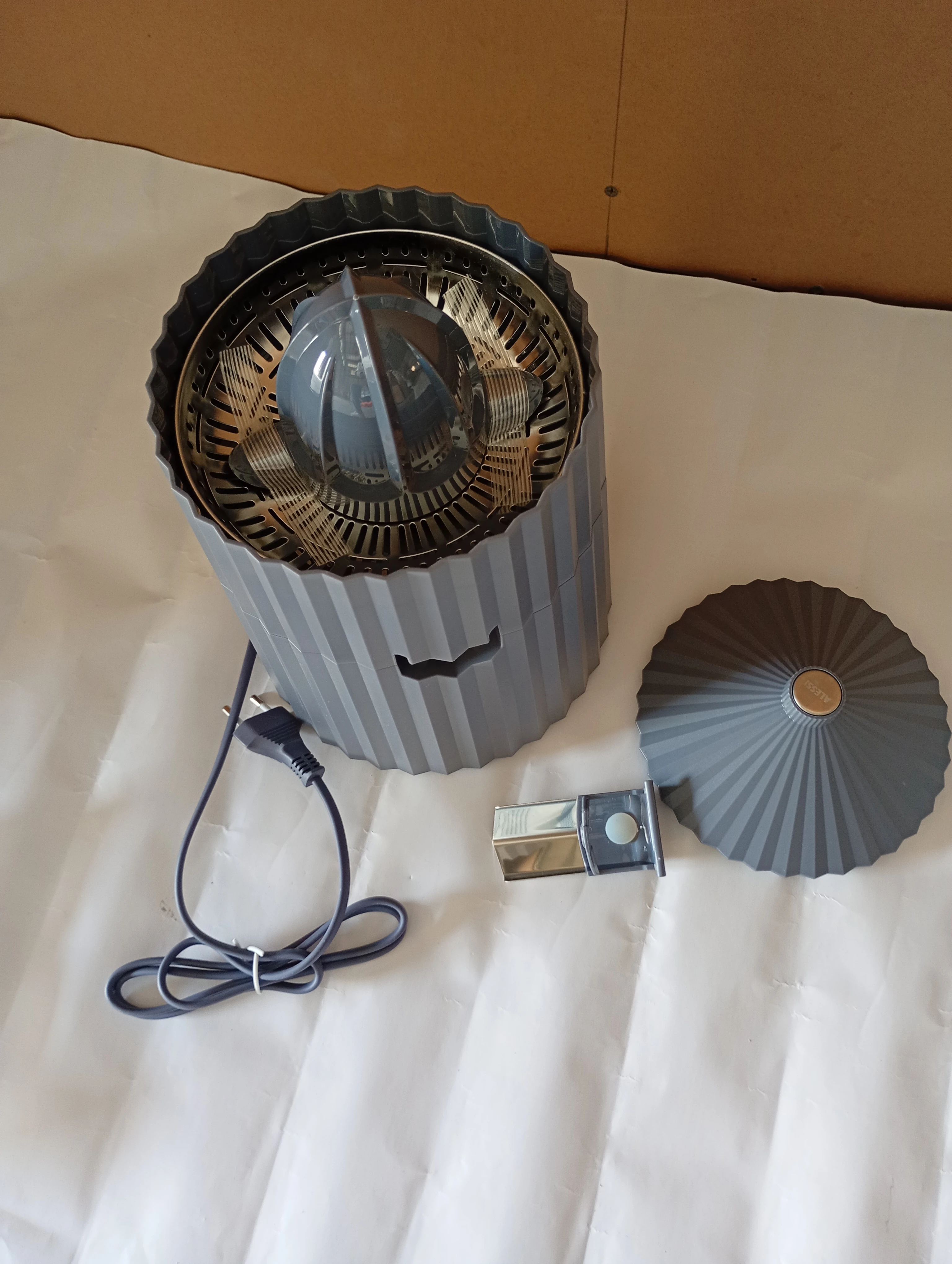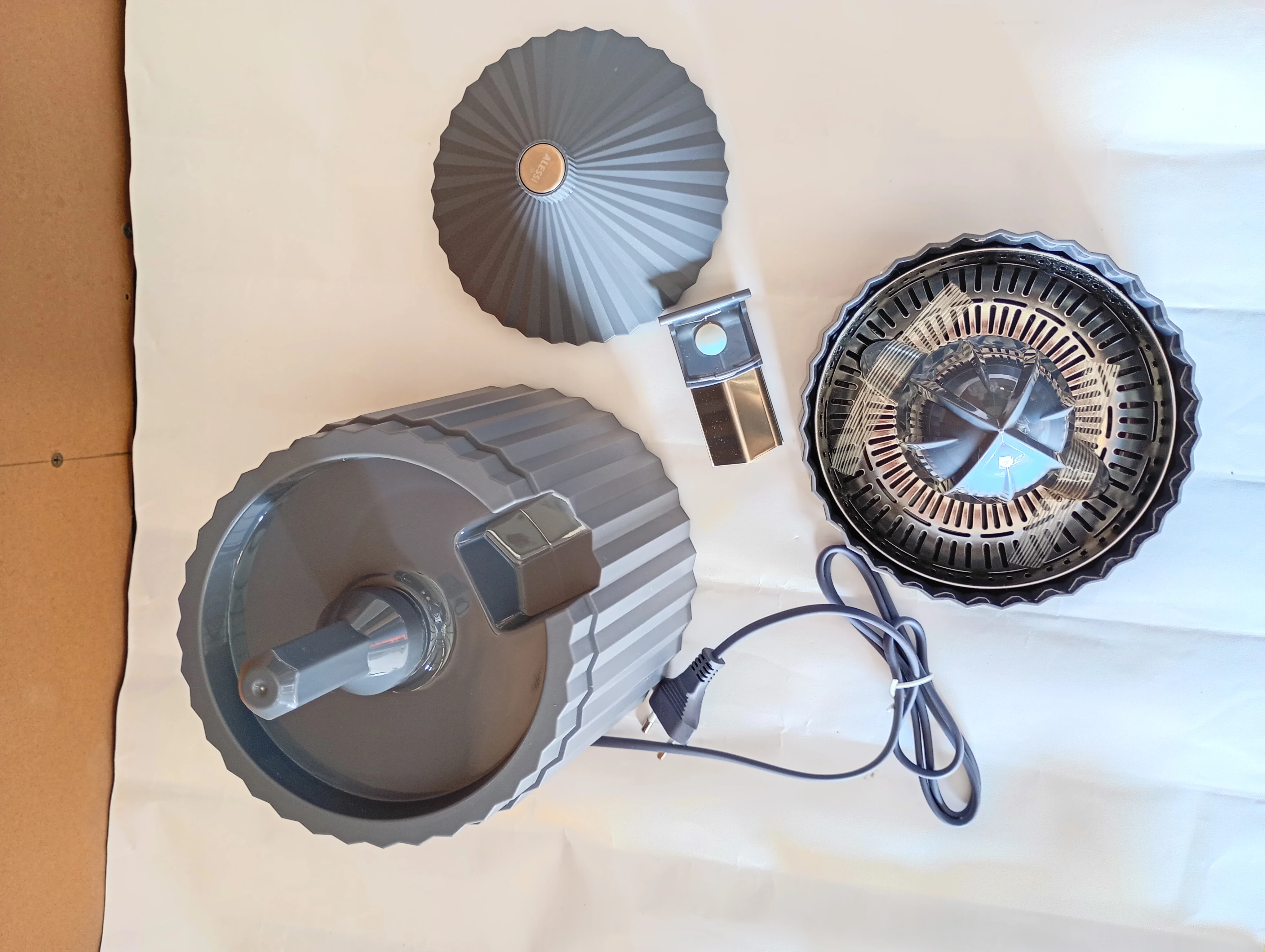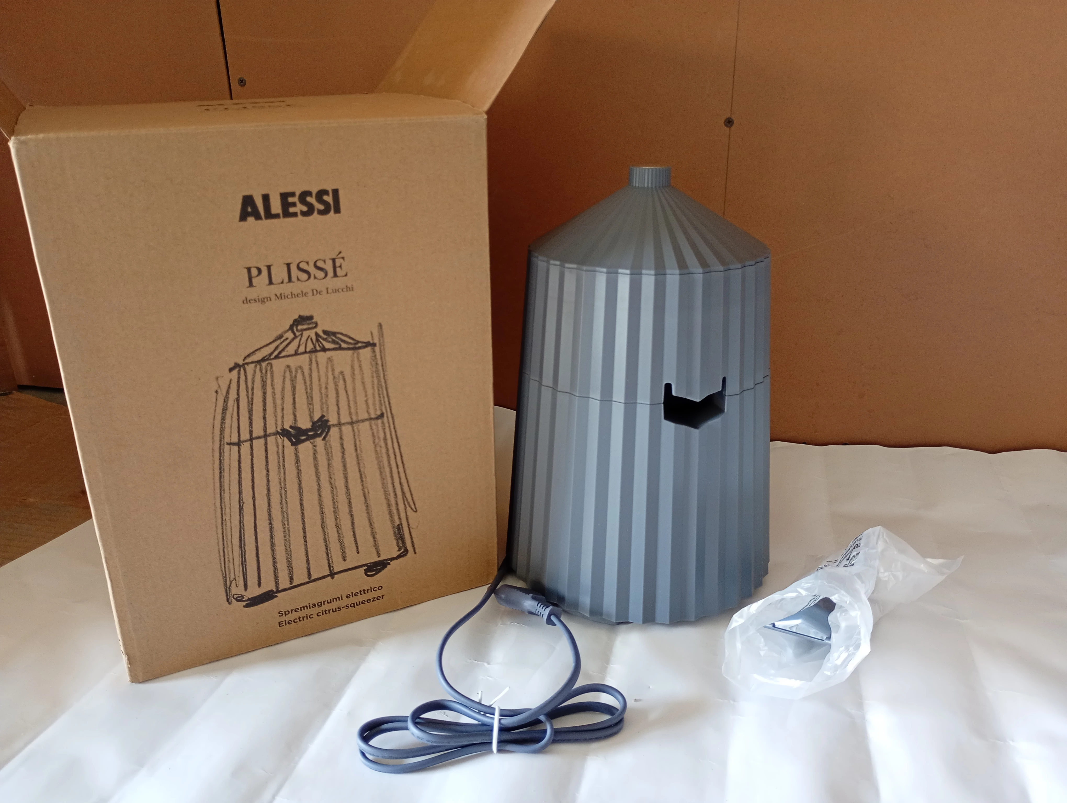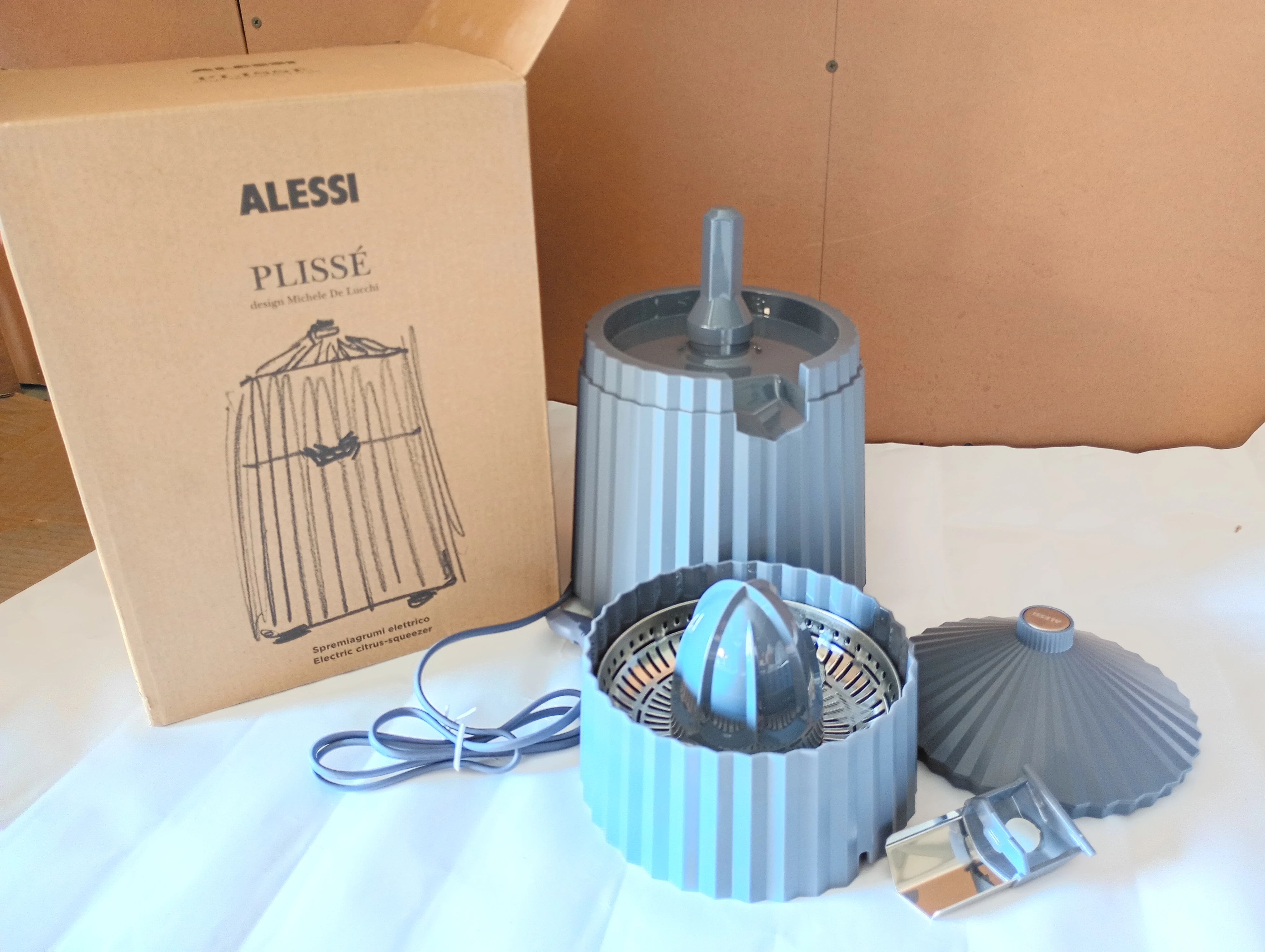 Plissé electric citrus squeezer black resin silver-tone hardware UK plug socket Available color in Grey, White and black.