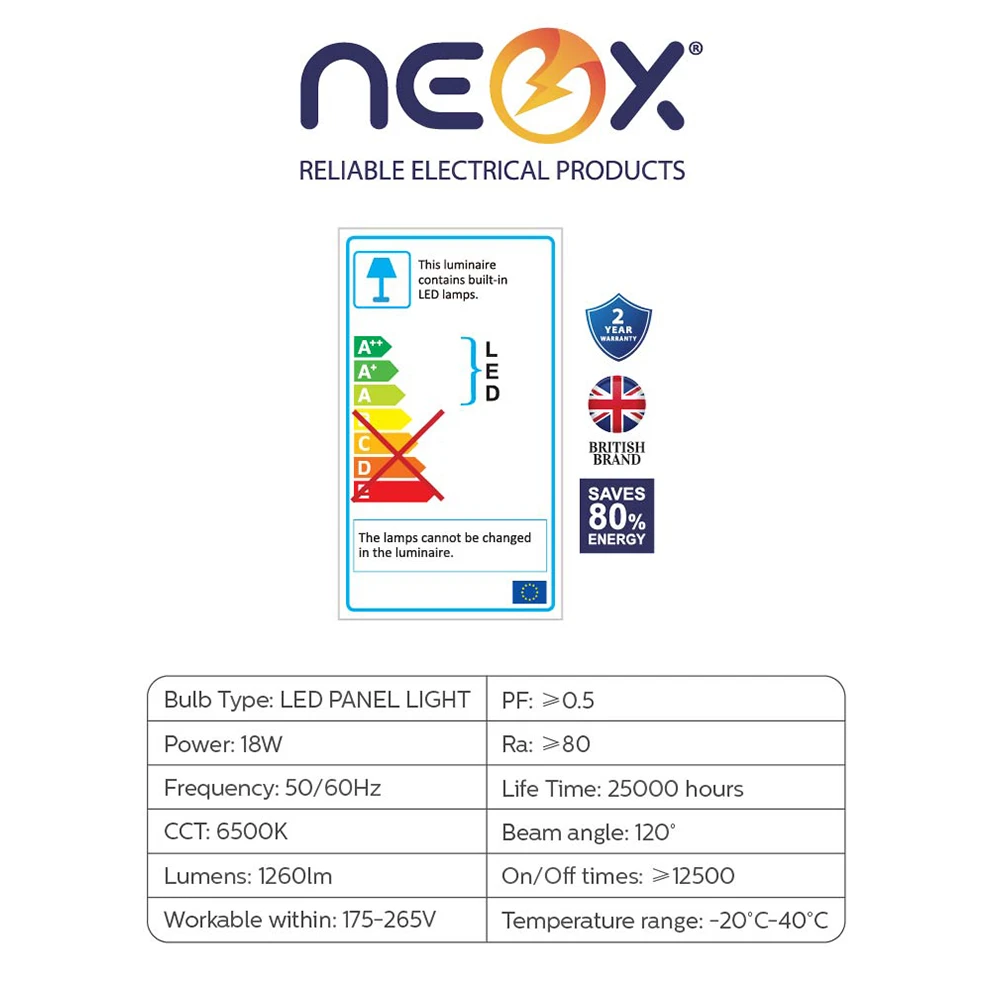 18W Neox LED Round Recessed slim panel Ceiling Light with Samsung LED | 225mm | 6500K Day Light | 2 -945GMB