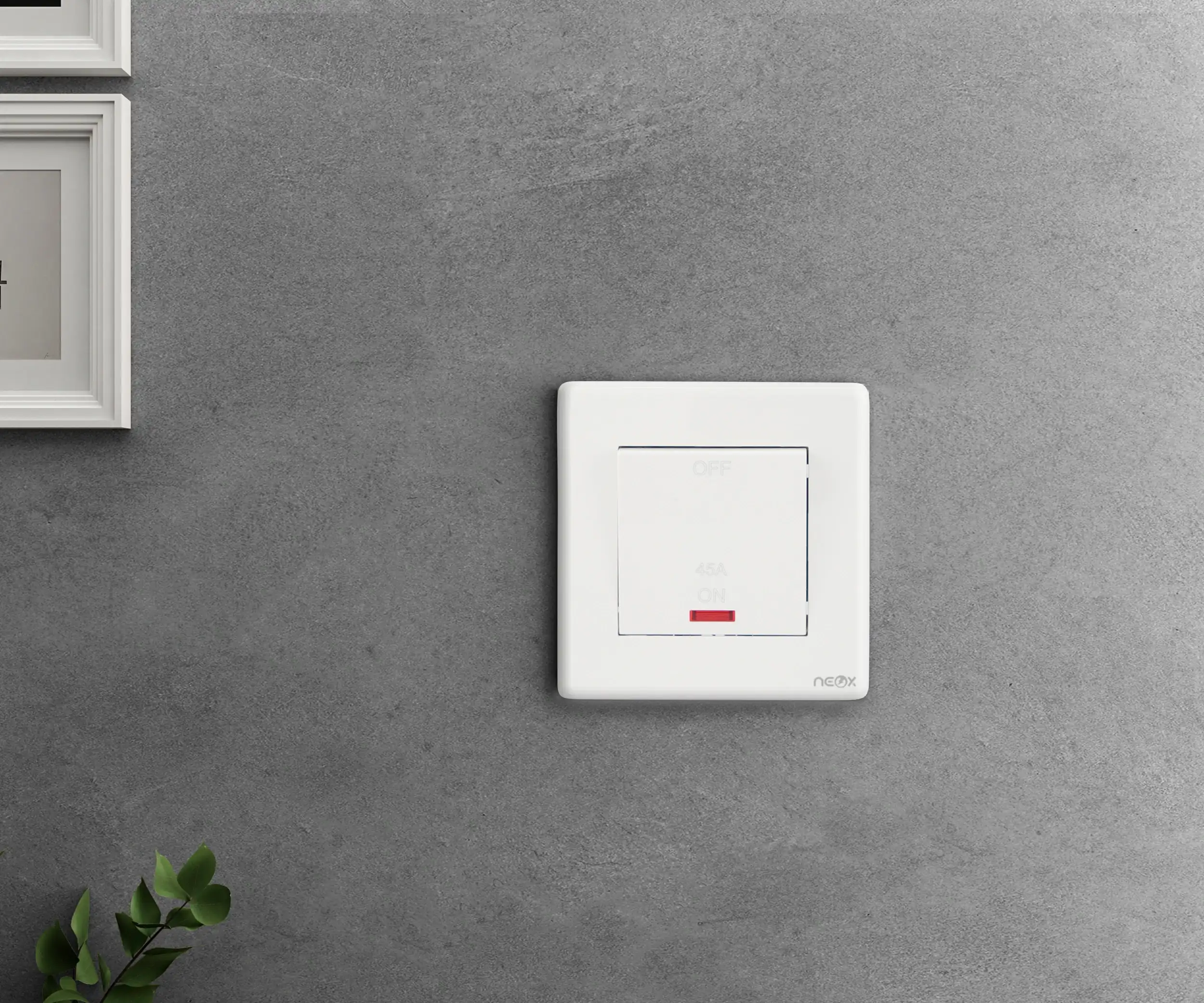 NEOX 1 Gang DP Switch with Power Indicator, 45A Dp, Material: Pc Panel & Stainless Steel Support-804CMX
