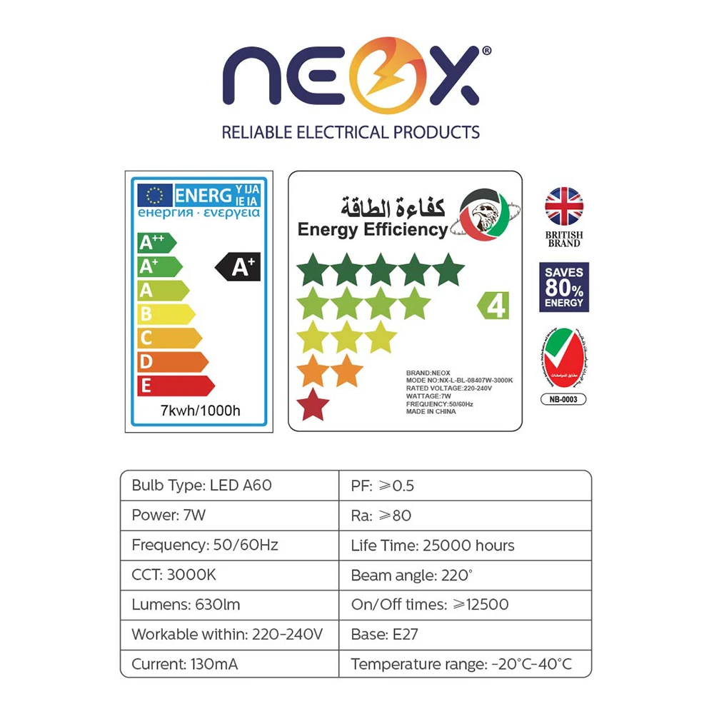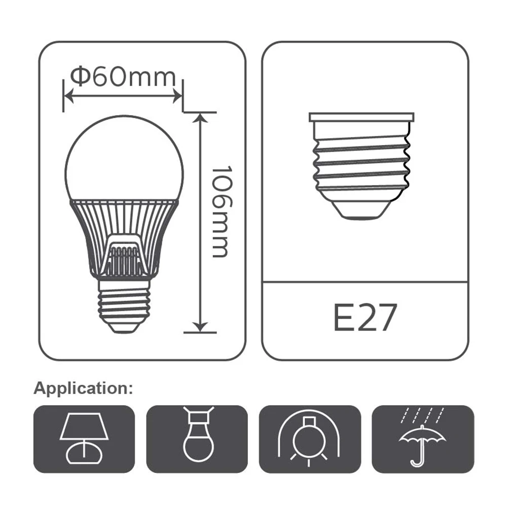 LED BALLET SERIES BULB, 60MMX106MM, 7W, 3000K, 630LM, 175-265V, WITH SAMSUNG LED-902KWR
