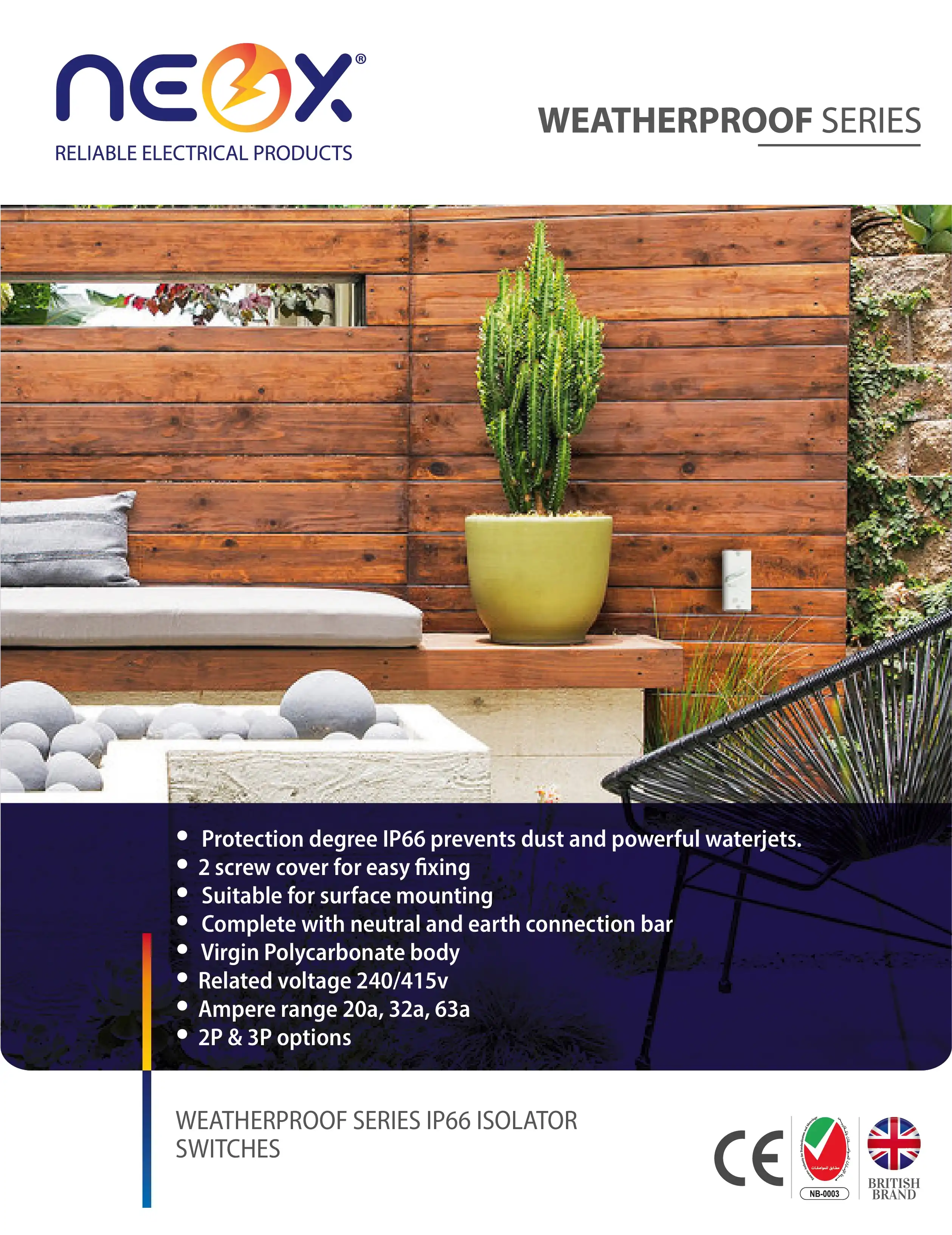 • Complete with neutral and earth connection bar.