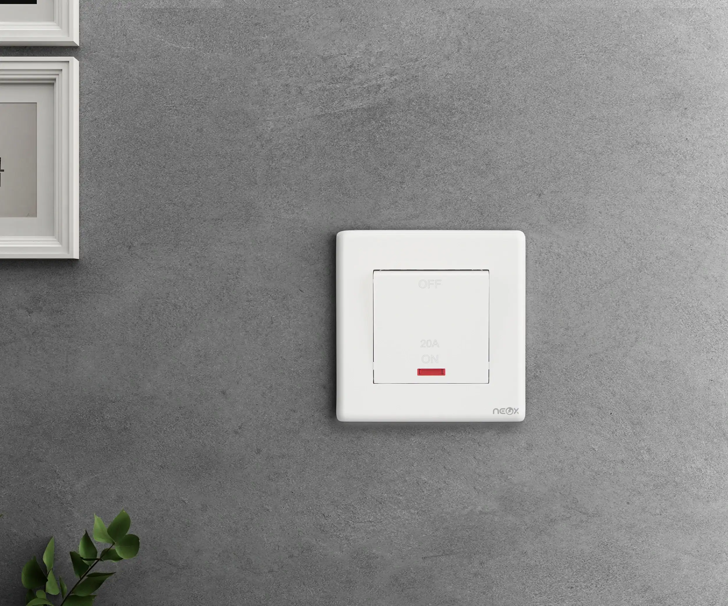 NEOX 1 Gang 2 Way Wide Rocker Plate Switch with Power Indicator, 20A, Material: Pc Panel & Stainless-715GQC