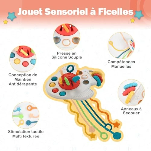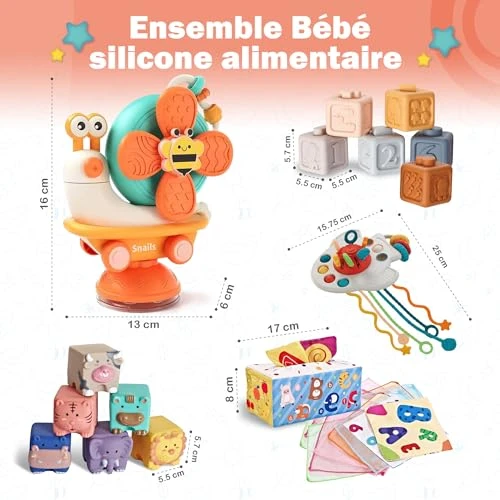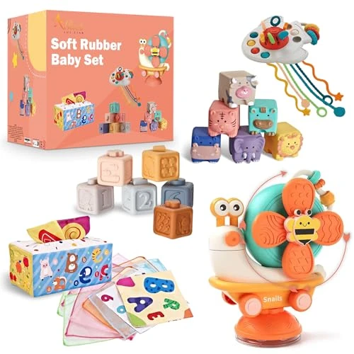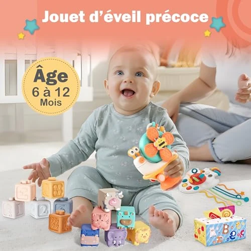 Athar the Star Baby Toys 6 Months+, Montessori Educational Activity Set This Montessori-inspired baby toy set is designed to support early learning, sensory development, and motor skills for babies from 6 months to 3 years old. The set offers a wide range of playful and educational activities that stimulate curiosity, coordination, and cognitive growth. The activity cube includes multiple interactive elements such as stacking blocks, animal shape sorters, a fabric alphabet tissue box, a sensory rocket toy with silicone cords, and a popper ball. These activities encourage babies to explore shapes, colors, textures, and animals through hands-on play. The animal-themed blocks introduce six friendly animals: cow, elephant, lion, hippopotamus, tiger, and beaver. Each block has a unique shape and texture, allowing babies to stack, manipulate, and discover while developing tactile awareness and fine motor skills. Sensory and motor development are at the core of this toy set. The fabric tissue box features colorful animals and alphabet letters to promote early language exposure. The rocket-shaped sensory toy with six silicone strings helps strengthen grip, coordination, and hand control. The popper ball and bubble poppers improve finger strength and dexterity. This educational toy set supports overall child development by enhancing fine motor skills, hand-eye coordination, sensory perception, and early cognitive learning. Bright colors, varied textures, and interactive elements keep babies engaged while introducing basic concepts such as animals, shapes, numbers, and letters. Designed as an evolving companion, this toy adapts to different stages of development. From 6 months, babies explore textures and sensory elements. Around 1 year old, they begin matching shapes and colors. From 2 years old, they are introduced to numbers and the alphabet. A long-lasting educational toy that grows with the child. Product details: Product name: Athar the Star Baby Educational Toy Set Age range: 6 months to 3 years Condition: New, original packaging Type: Montessori educational and sensory toys Contents: Stacking blocks, animal shape sorters, fabric alphabet tissue box, sensory rocket, popper ball Development focus: Sensory development, fine motor skills, cognitive learning, hand-eye coordination Certifications: CE / EN71 (documents available if applicable) Warranty: No warranty Stock location: France / EU Sale type: Surplus stock, B2B