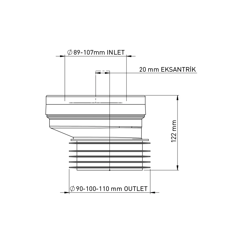 Pp Wc Eccentric Connector 20 Mm W/ Blk Ring